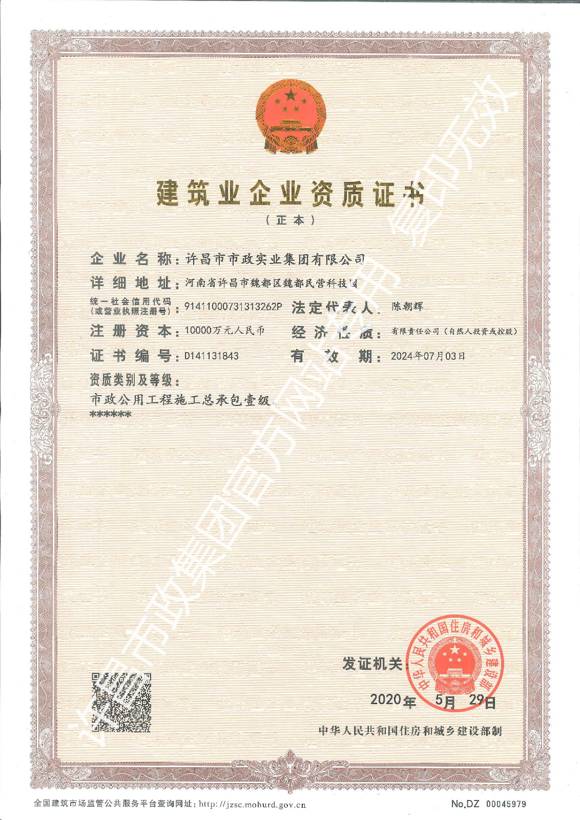 許昌市政 首頁(yè) > 許昌市政 > 企業(yè)資質(zhì)