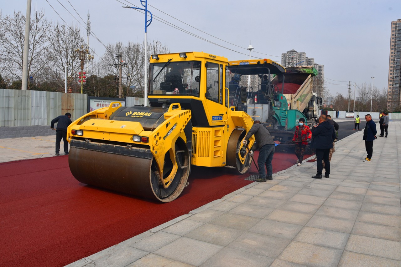 3月4日7時(shí),在生產(chǎn)機(jī)器隆隆的轟鳴聲中,許昌市政集團(tuán)自主生產(chǎn)的第一車(chē)彩色瀝青混凝土成功出廠。伴隨著冉冉升起的朝陽(yáng),滿(mǎn)載著彩色瀝青混凝土的運(yùn)輸車(chē)駛向施工工地。